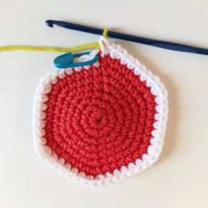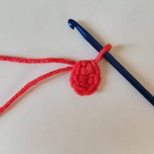 1) Örgü bitiş yerinden ikiye katlanır. Önce gözler, ardından çekirdekler yapılır.